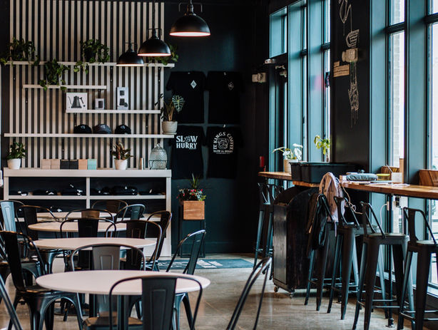 Multiple tables and chairs as well couch seating